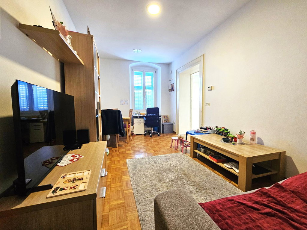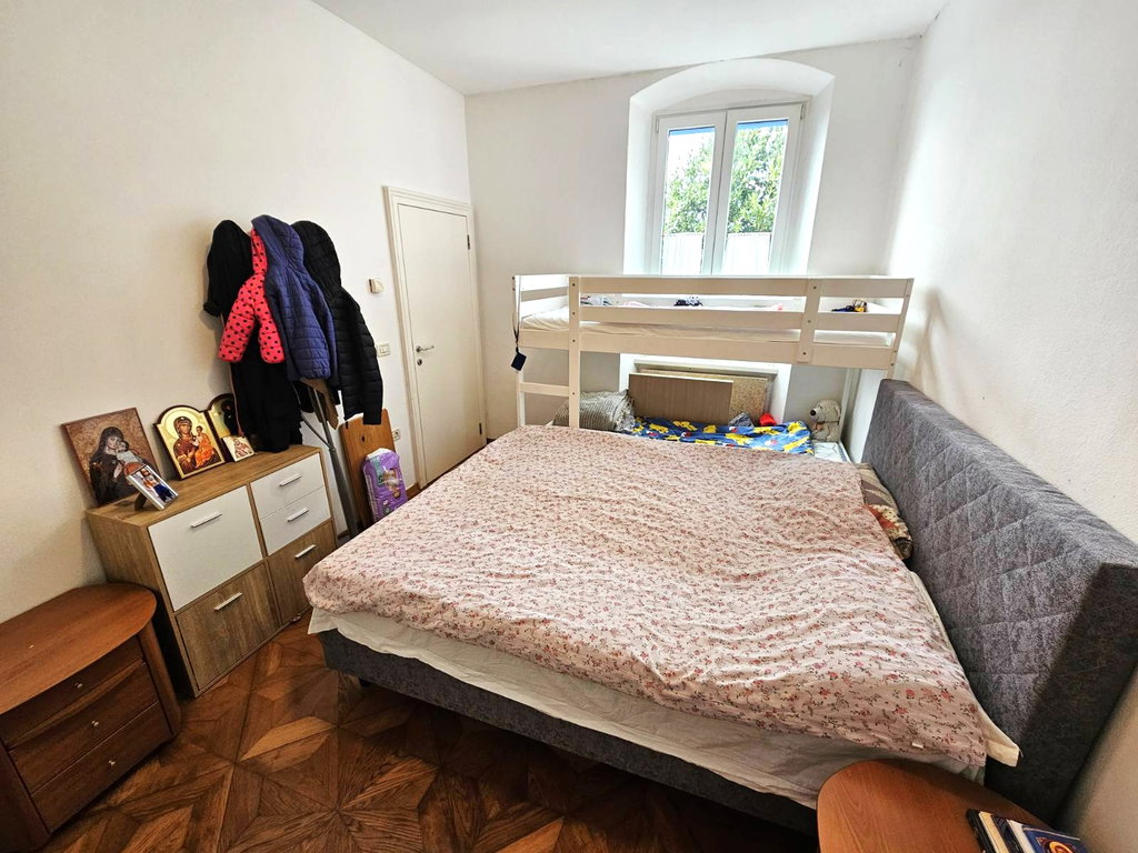 SlovenščinaV centru Kopra prodamo svetlo 2-sobno stanovanje v 1. nadstropju zgodovinske palače, z dodatnim dostopom do podstrešja v izmeri 27,4 m², ki ga je možno združiti s stanovanjem (tik nad spalnico) in ustvariti prostoren mansardni dom.